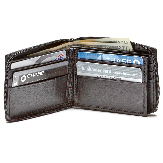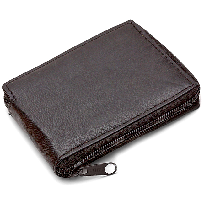 - Genuine leather men's zip around credit card wallet