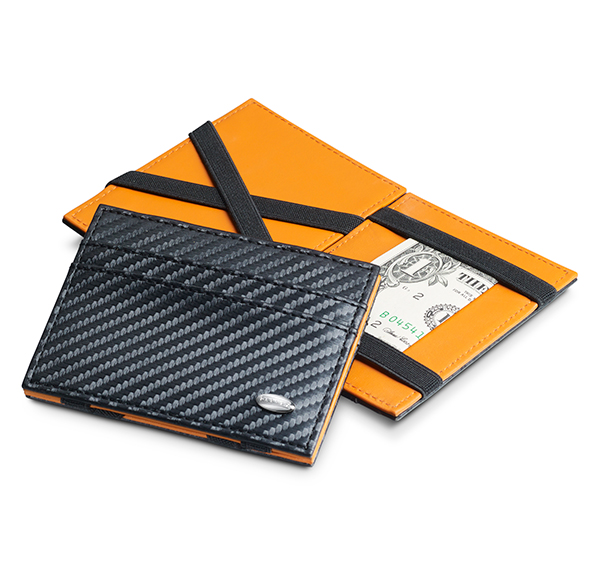 PRODUCT DESCRIPTIONDalvey, make of fine men's gifts since 1937, has taken the magic wallet to a whole new level. This small compact wallet holds your cash "magically". Fold it open, lay you bills on the elastic bands and close it. Re-open it and your cash is held safely and securely until you're ready to slide it out. Outside, there are two slots for your credit cards or an ID. The wallet is made of black carbon fiber leather for a unique look and feel. The interior is lined with yellow leather for a striking contrast. This magic wallet by Dalvey is compact, convenient and just plain cool!