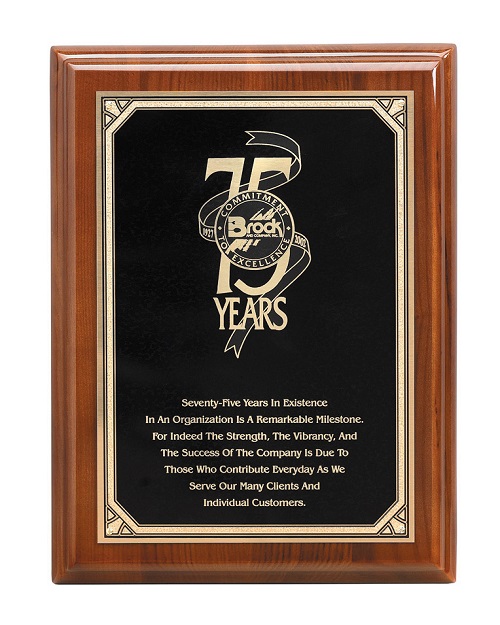 This walnut recognition plaque is a great way to recognize employees, reward a special achievement or commemorate a record of excellence. Its made of solid walnut with rich grains and a polished finish. It has a two tiered beveled edge and rounded corners. Attached to the front is a satiny smooth black engraving plate with decorative notched corners. Customize this plate with the congratulatory message of your choice. You can enter and customize each line of personalization by checking the Personalize It box above. You can also add a logo free of charge by checking the Add Logo box above. For logo orders, we'll create a proof that we'll email you for approval before we finish the customization. This walnut recognition plaque comes packaged in a presentation box and is available in your choice of three sizes.